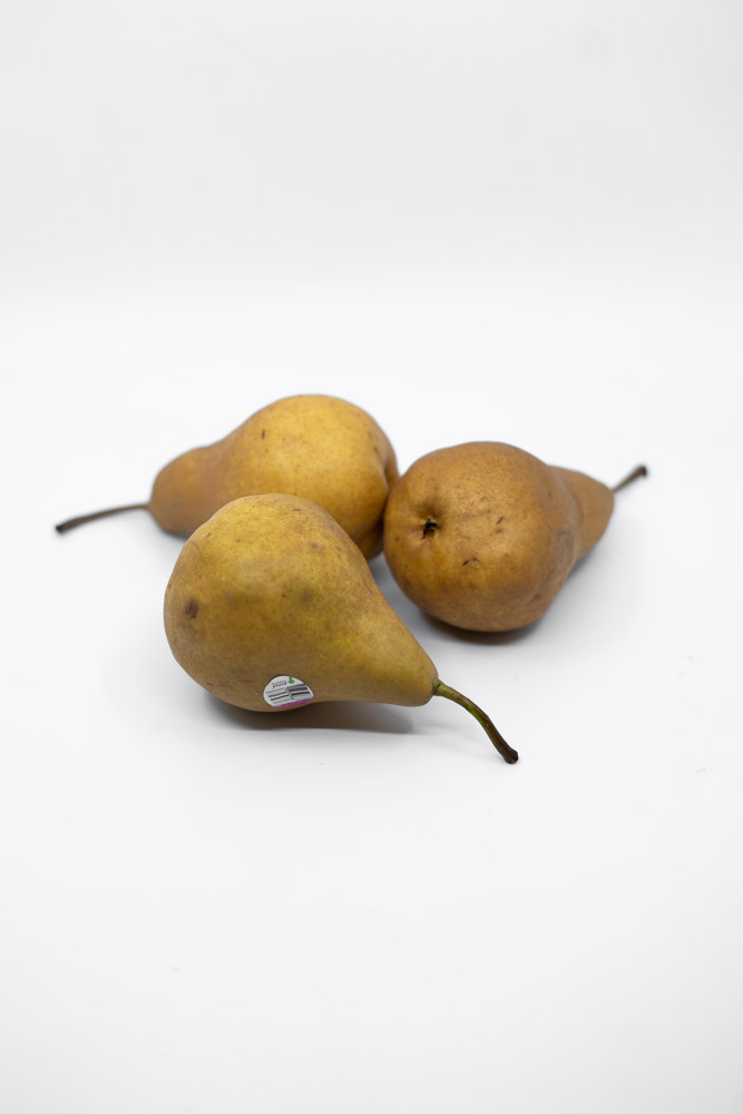 Characteristic features are a long tapering neck and russeted skin. Famous for its warm cinnamon color, the Bosc pear is often used in drawings, paintings, and photography due to its shape. Its white flesh is denser, crisper and smoother than that of the ‘Williams’ or ‘D’Anjou’ pear. It is called the “aristocrat of pears”. It is suitable to be used in poaching.